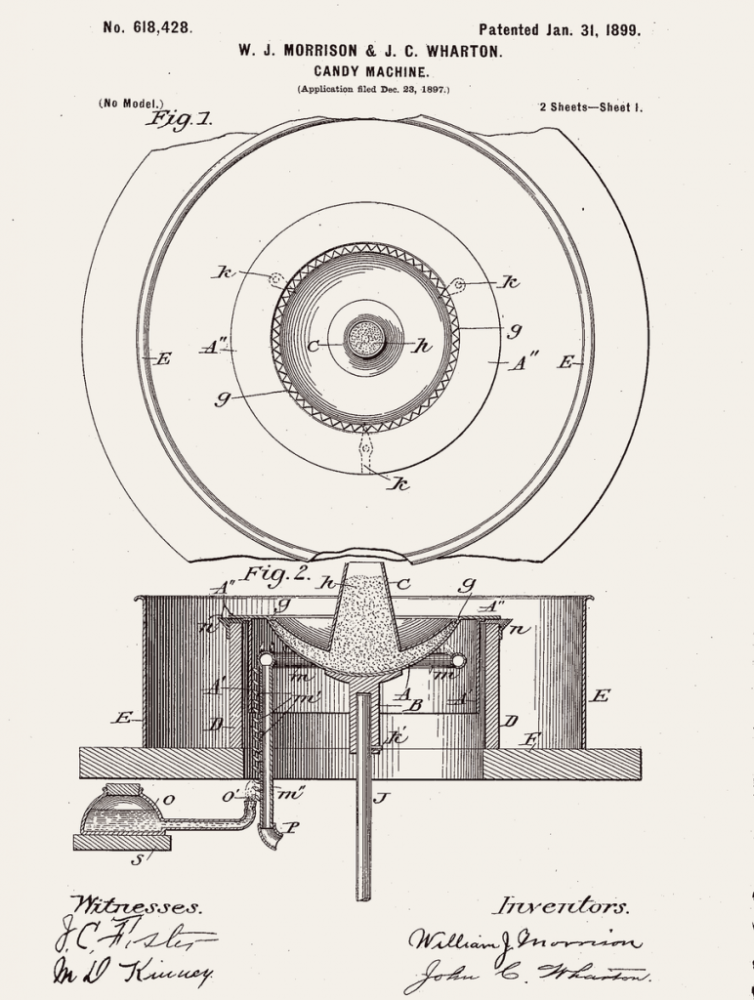 En 1897, ambos pusieron manos a la obra y fabricaron la primera máquina eléctrica de caramelos que derretía el azúcar en una cámara central giratoria y con ayuda de aire pasaban el azúcar derretido por una rejilla de alambre hasta el cuenco metálico circundante, para producir ese caramelo que ahora adoramos.
