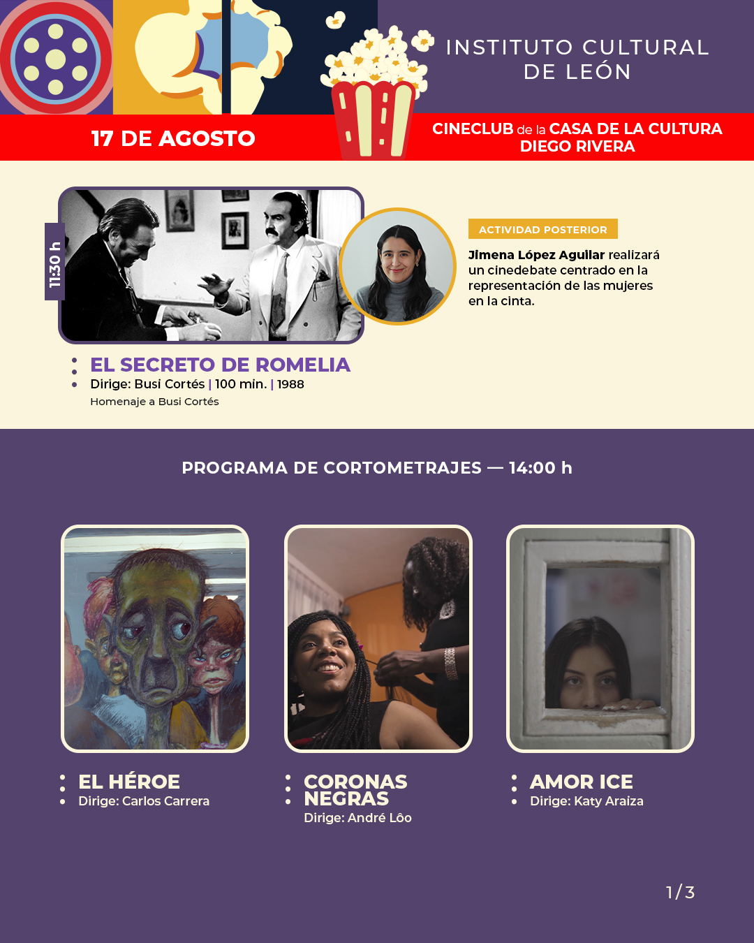 Presentará: Cinedebate centrado en la representación de las mujeres en la cinta “El secreto de Romelia”.